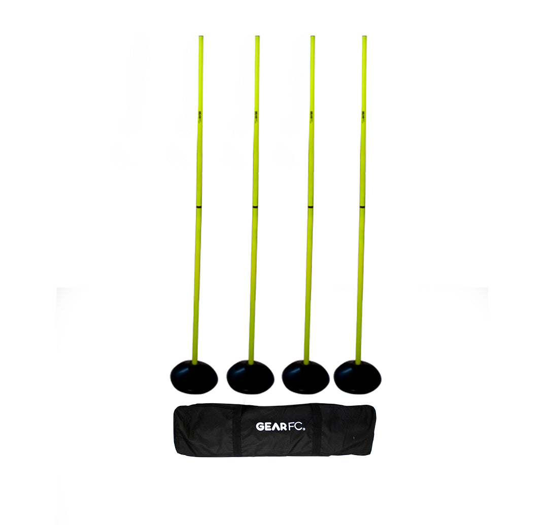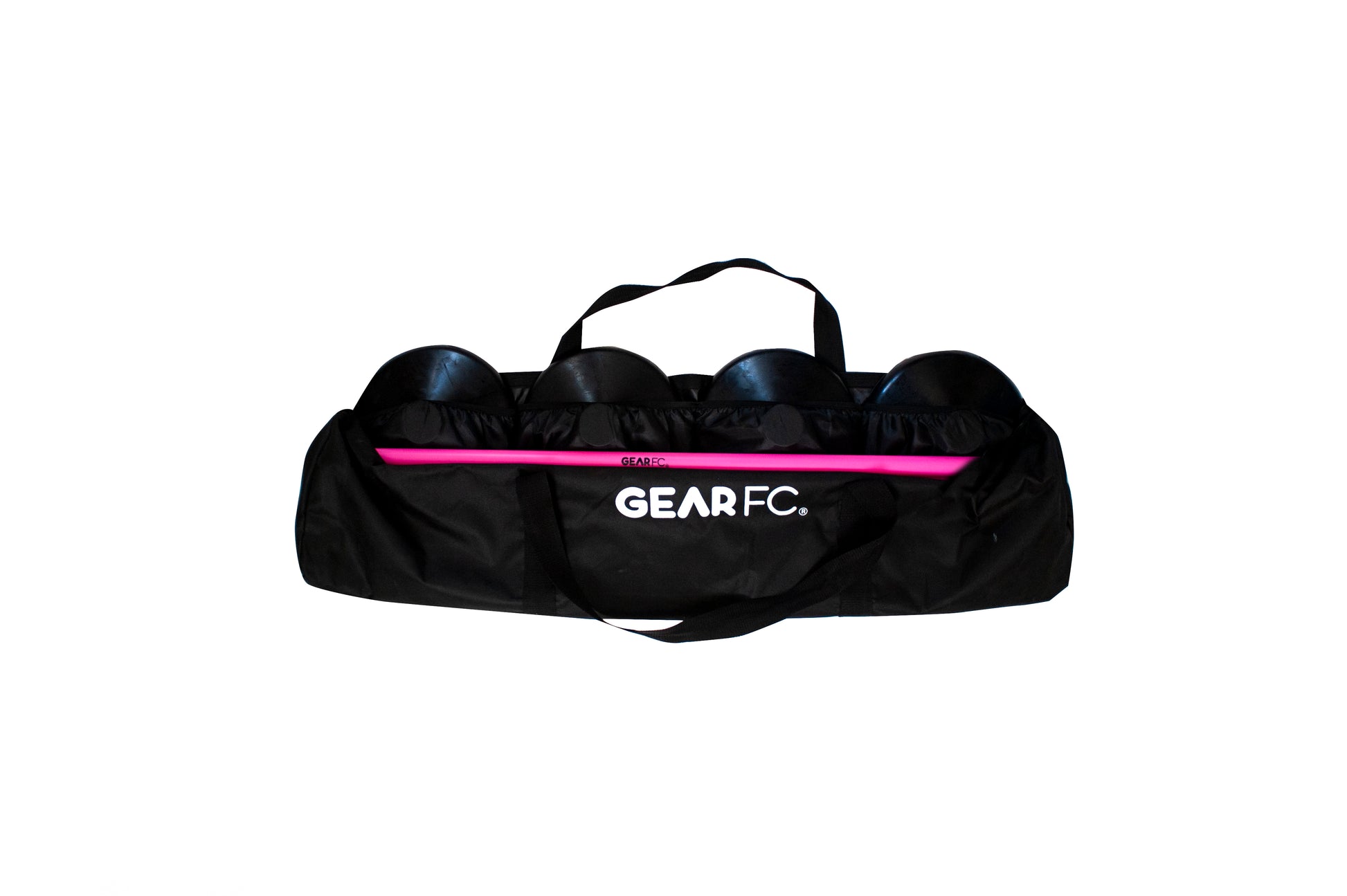 The ALPHA Gear Turf Base Agility Speed Pole pack comes in a pack of 4 in a neat heavy duty carry bag. Now you can simply carry and transport 4 Agility Poles and 4 Rubber Bases quickly and easily. The ALPHA Gear Speed Poles are a 2 piece pole with middle tread connection. The 2 piece poles are then connected so they remain attached that makes it super-fast to locate and set up. The poles are 5ft High and 25mm hi quality material. Available in hi-viz Yellow, Orange & Pink.