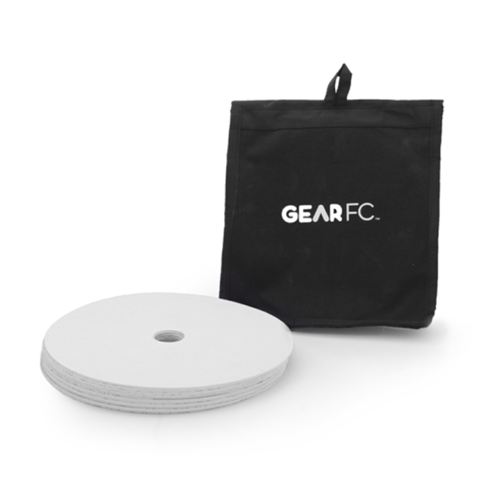 The Gear FC Flat Rubber Dot Markers -12 pack are ideal training tool for agility and ball drills as the highly visible colors and flat design provide excellent field marking properties without impeding the player and/or ball. Perfect for indoor use or windy conditions where traditional cones will fly away.
